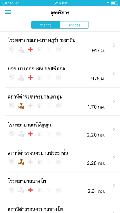 - Service points ( toilet, gas station , police station , health service, rest area )