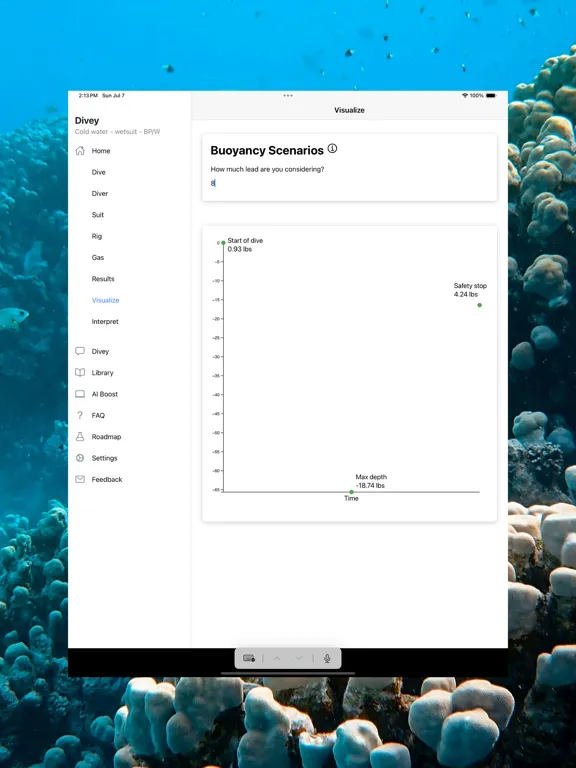 - AI Interpretation: Harness the power of AI to analyze your dive configurations and deliver accurate buoyancy results.