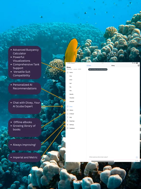 - Personal Dive Assistant: Divey offers insights on dive spots, upcoming dives, and gear recommendations tailored to your needs.