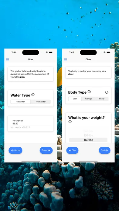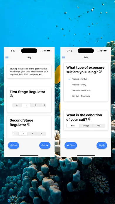 - Easy-to-Choose Estimates: Quickly select estimates for personal buoyancy, fins, BCD, and more to ensure optimal performance.