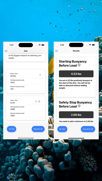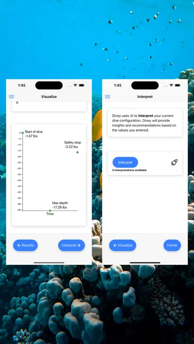 - Dive Visualizations: Preview your dive plans with clear, easy-to-understand visualizations to grasp every detail before you dive.
