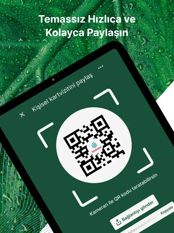 You can easily and quickly share your Letshare digital business card with anyone via WhatsApp, e-mail, text message, social media accounts, AirDrop, etc. using QR code or the link we specifically created for your business card.