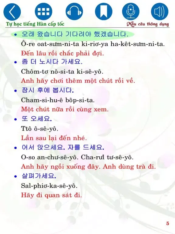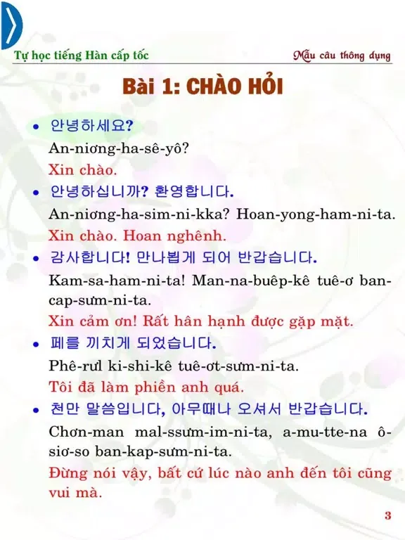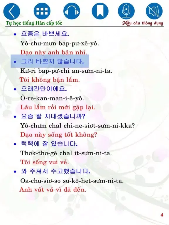 Quyển sách “Tự học tiếng Hàn cấp tốc – Mẫu câu thông dụng” gồm 137 trang được thực hiện theo tiêu chí phiên âm theo cách đọc của người Việt và dùng để “Học tiếng Hàn mọi lúc mọi nơi” khi trong tay có chiếc điện thoại thông minh. Xin chân thành cảm ơn và chúc các bạn học tập hiệu quả! Những tiện ích khi bạn sử dụng Sách Thông Minh - SmartBook của chúng tôi: Sách được tích hợp âm thanh (audio) vào trong sách, đánh dấu từng câu khi đọc, khi cần nghe lại câu vừa mới đọc hay câu nào đó thì bạn chỉ cần chạm tay vào câu đó thì sẽ phát âm thanh; Ngoài ra SmartBooks còn có tính năng thu lại giọng đọc (giọng của bạn tập đọc câu vừa học, vừa nghe) của bạn bằng cách nhấn vào nút Recorder (icon Micro), khi bạn nhấn vào icon “Headphone” “Nghe và viết”, xuất hiện màn hình có rất nhiều tính năng giúp bạn nghe và viết lại câu vừa nghe bằng phím hay bằng tay,… Sách được thiết kế để sử dụng mọi lúc mọi nơi khi trong tay bạn có chiếc Smart Phone. Đây là một bước đột phá của chúng tôi trong thời đại công nghệ số nó sẽ giúp các bạn rất nhiều trong việc học và đọc sách.