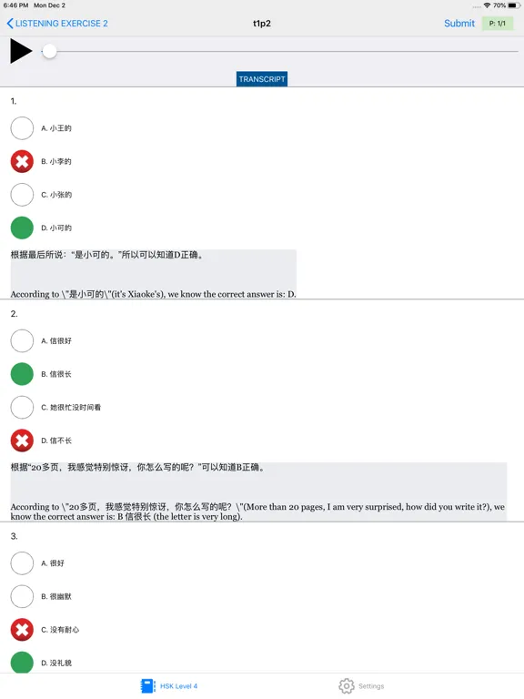 12 test Level 4 – 汉语水平考试® 2020 Screenshots