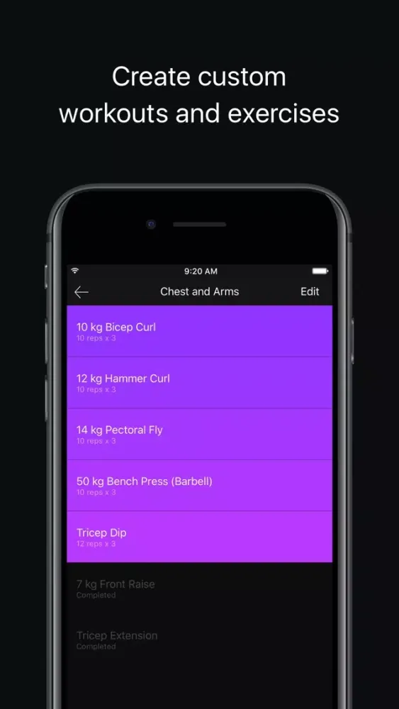 • Create as many custom workouts and exercises you want.
