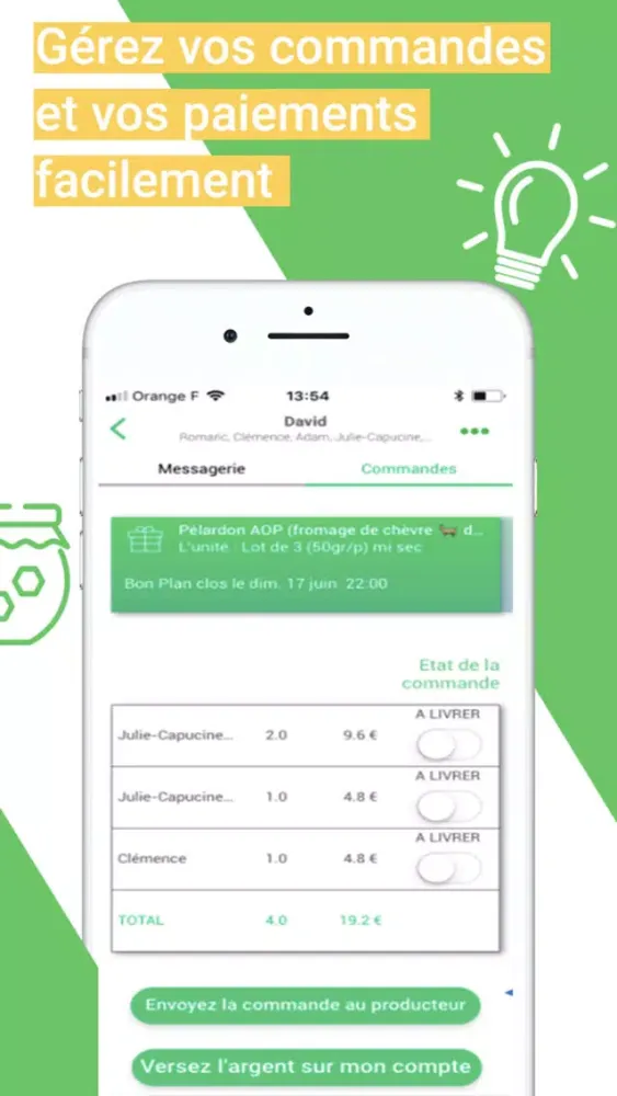 - Envoyer la liste des commandes au producteur pour gagner du temps ou vous faire livrer
