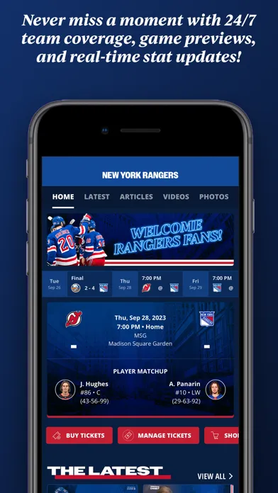 Download the app today and immerse yourself in the world of New York Rangers hockey. Let's Go Rangers!