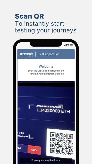 The test application works with the Transmit QuickStart cloud service. You can contact Transmit Security at https://transmitsecurity.com/try-it to access the cloud service and start designing your journeys. These journeys can be tested using the Transmit QuickStart app and then integrated into your own application.