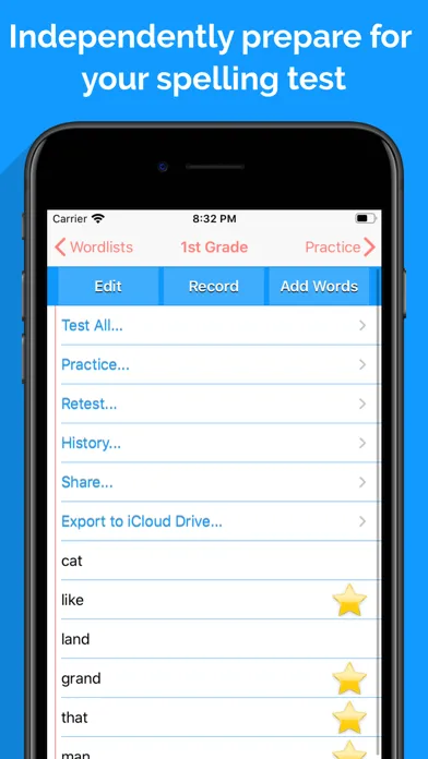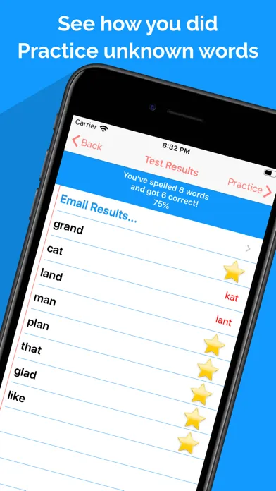 Create a personalized list of words to practice. Test your spelling - hear each word spoken. Get a star for each correct word. Practice just the words you have yet to master. Retest your words at anytime. Students can practice their words independently.