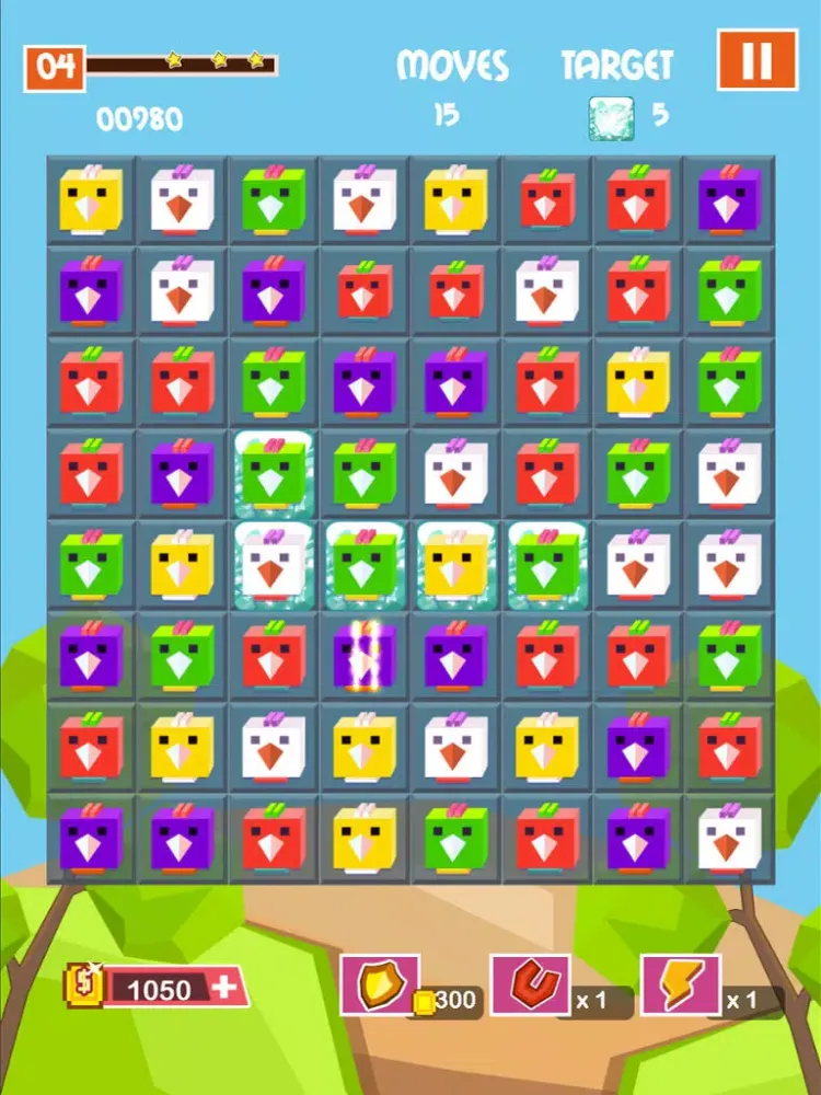 Cross the birds to interchange them. Align three or more of the same color to create combos and complete all the fun levels!