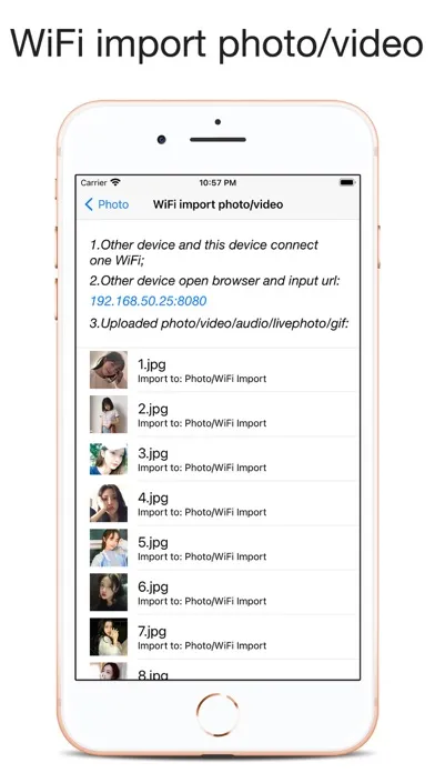 --- You can use file sharing and wireless networking to import private photos and videos.