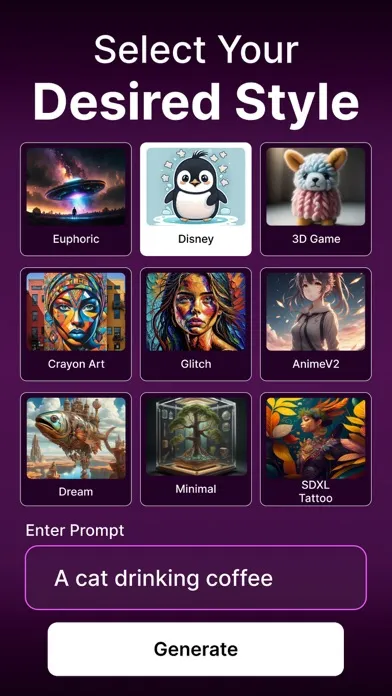 Let your imagination run wild with our AI Art Generator App. Simply enter a prompt and choose an art style, and it will create beautiful wallpapers, images, paintings, and drawings for you in seconds. With AI Image Generator, you can create anything you can imagine.