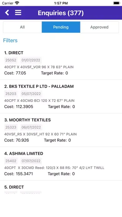 Online enquiry tool for textile fabrics.