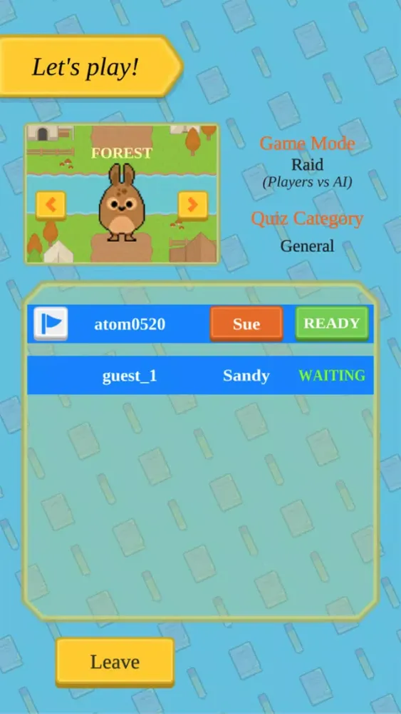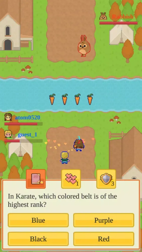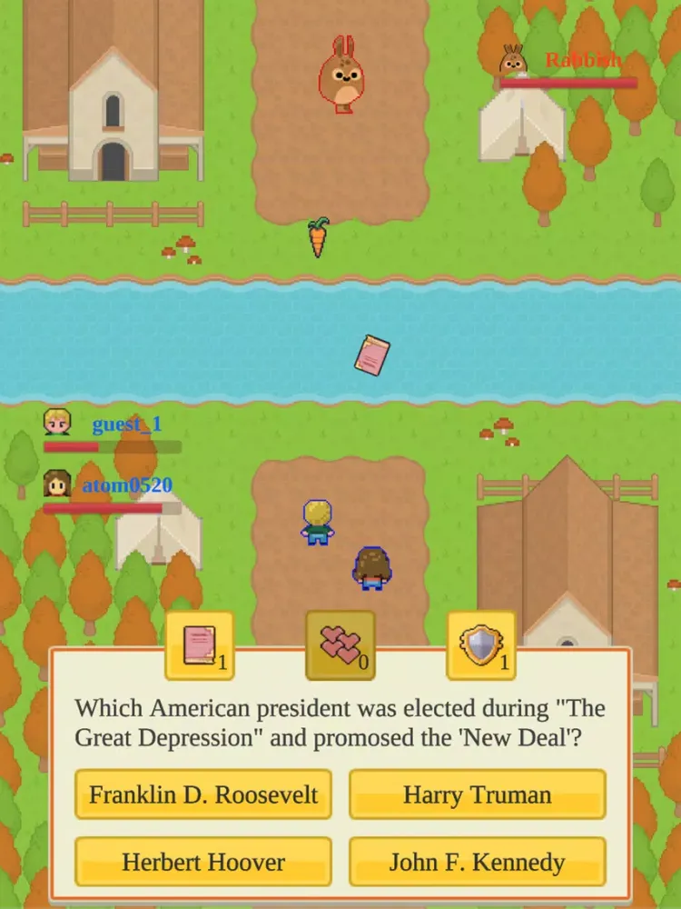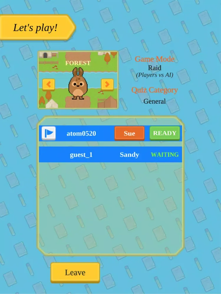 This is a multiplayer quiz RPG battle game which combines the gameplays of quiz game and RPG battle. In this game players fight against enemies by answering quiz questions, and getting the right answers would grant players the power to cast various interesting skills. Players can enjoy the fun of RPG battle and enrich their knowledge at the same time.