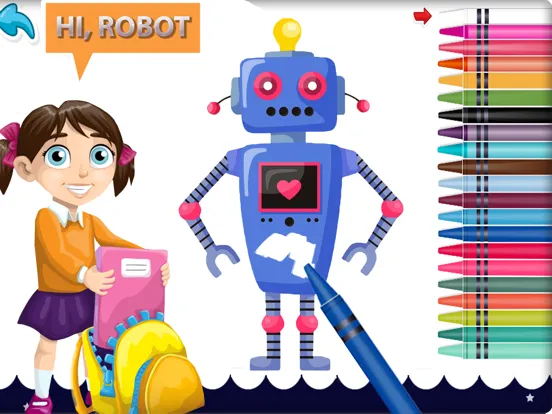 Welcome to Robot World. Robot Attack Paint is the funny coloring book game for kids. The kids can paint on many cute robot cartoons with . This game help kids learn to paint easy with fingers, promote imagination, concentration, thinking, art skill and picture in their minds.