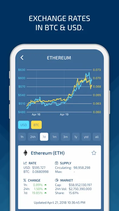 We list the current exchange rates for over 10000 cryptocurrencies and tokens, in both Bitcoin (BTC) and US dollar (USD). Sort information based on parameters that you find important, or select and display only your favourite cryptocurrencies and tokens.