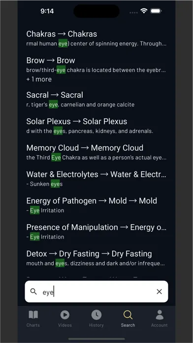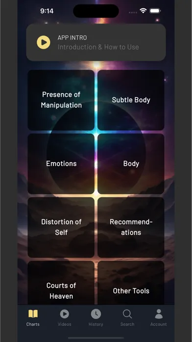 This app includes a multiple testing charts for healing practitioners to use to identify energy blocks or imbalances.