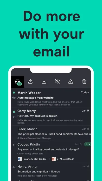 Send business emails, receive and view incoming mails. Manage customers and accounts and much more!