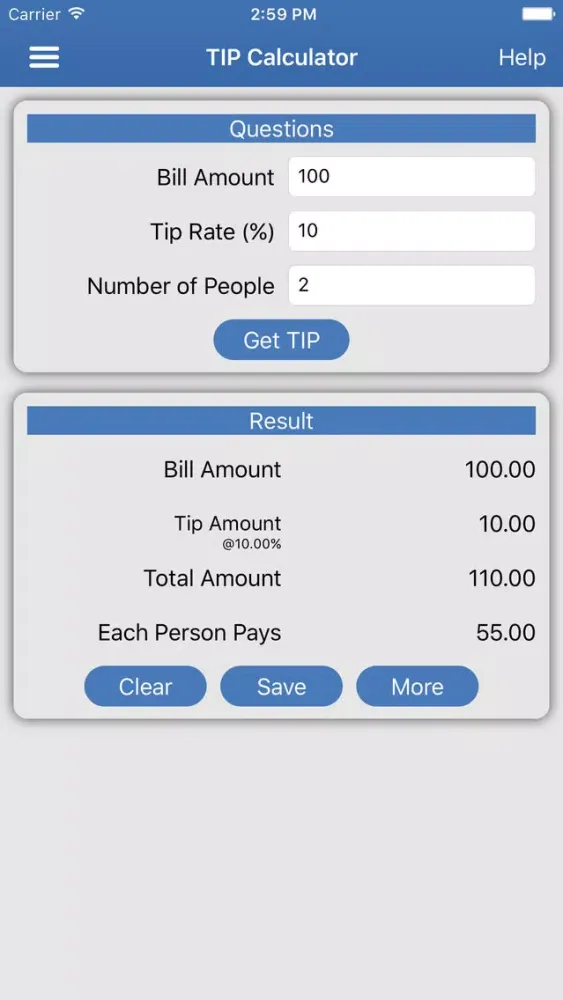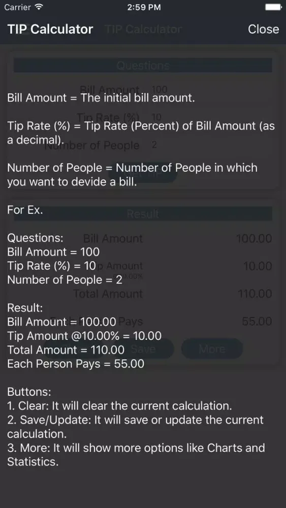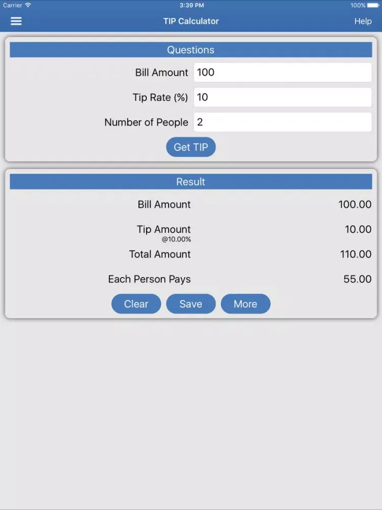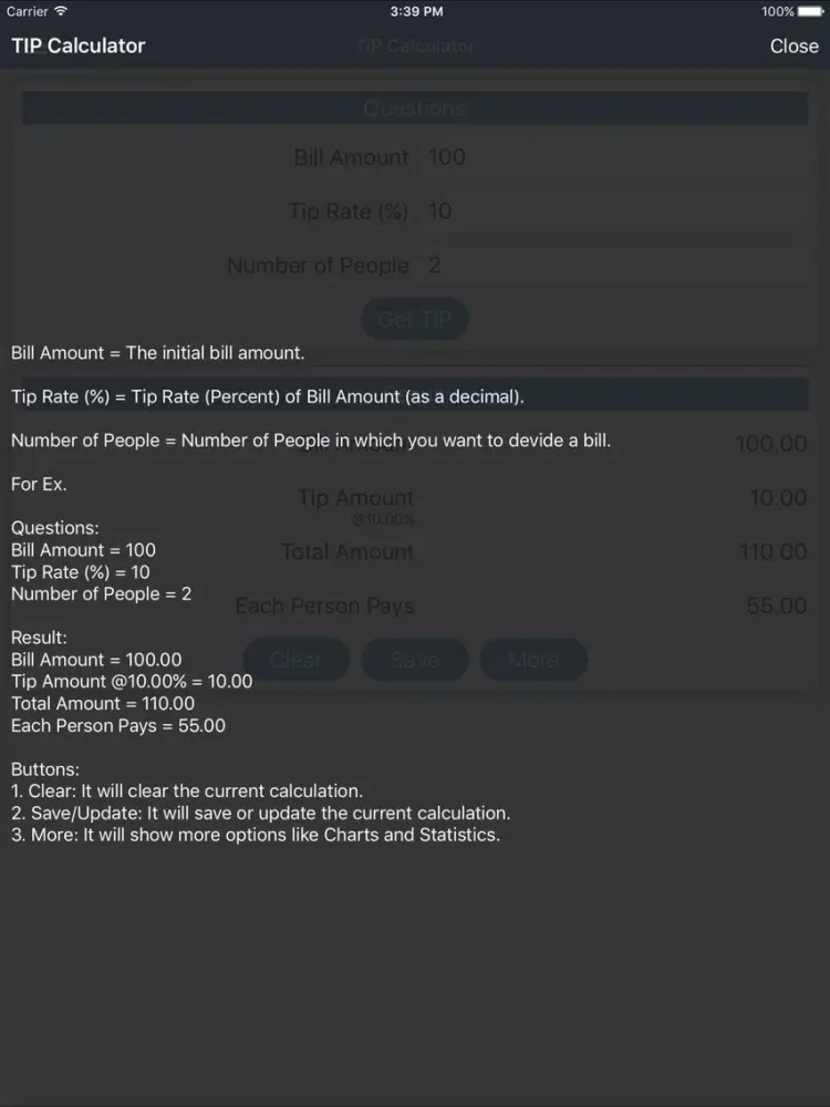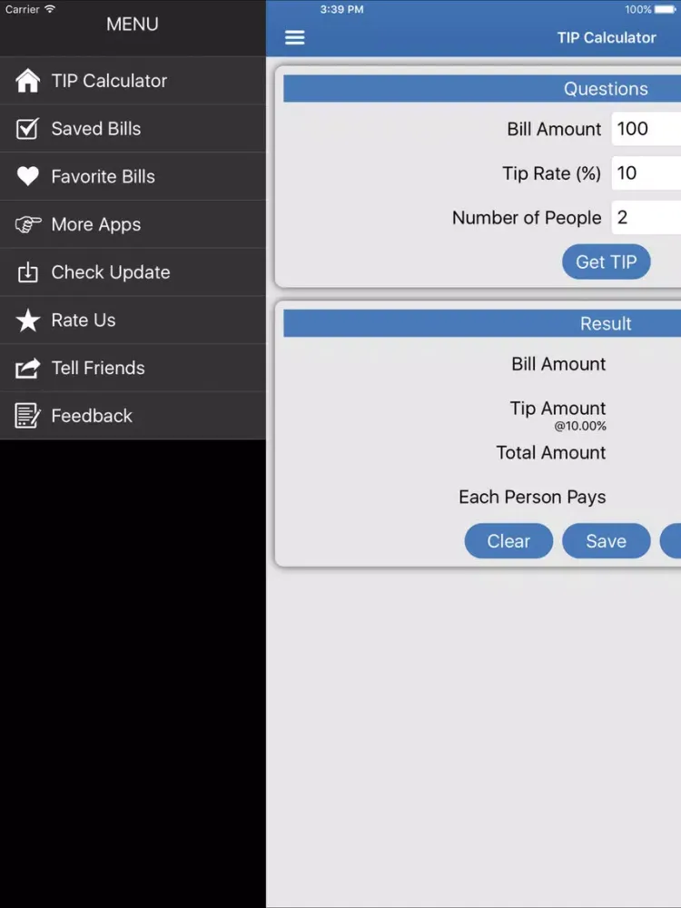 Tip Calculator application allows you to calculate Tip and Split the Bill between any number of people and view as a Pie chart and Bar chart with Save, Update, Favorite, Search and Delete Bill Calculations.