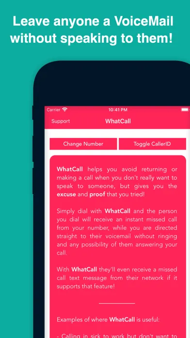 - Calling in sick to work but don't want to speak to your boss and answer lots of awkward questions. With WhatCall your boss with think you tried calling them while you can leave a voicemail letting them know you won't be in to work.