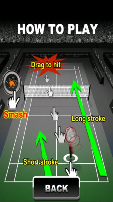 Drag badminton racket right & left to play shots in a direction you want, it's easy to coach and learn and challenging to master.