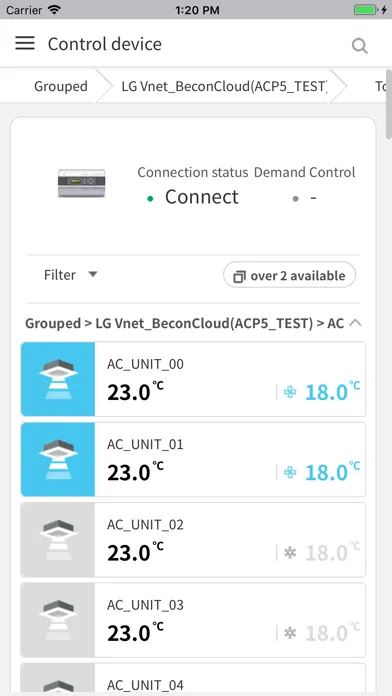 Mobile application for user of LG WHISEN system air conditioner conneted to LG BECON cloud.