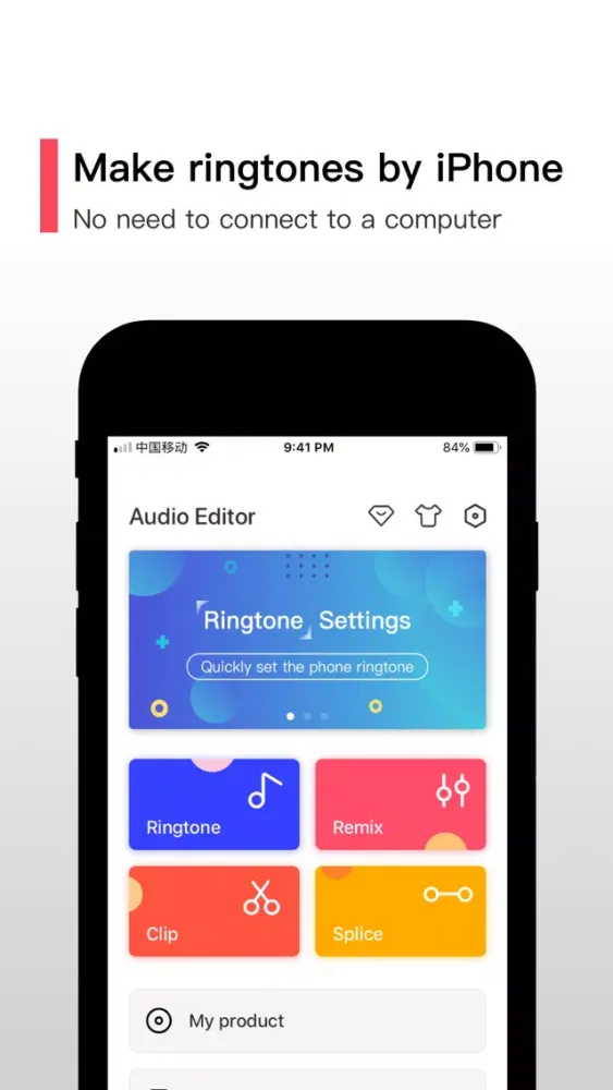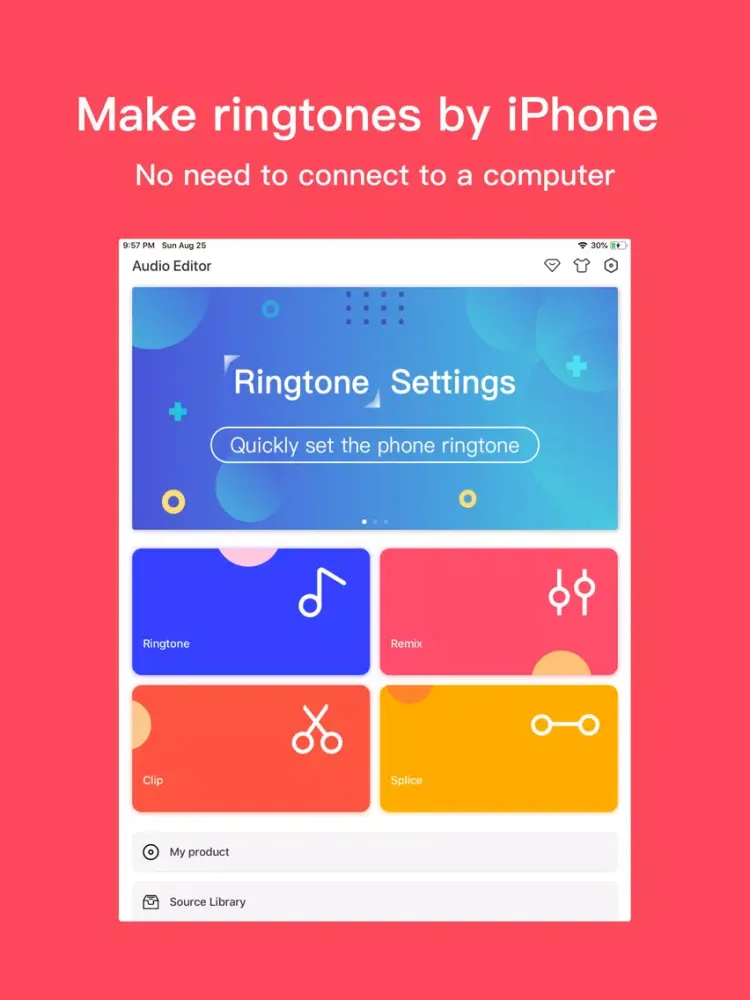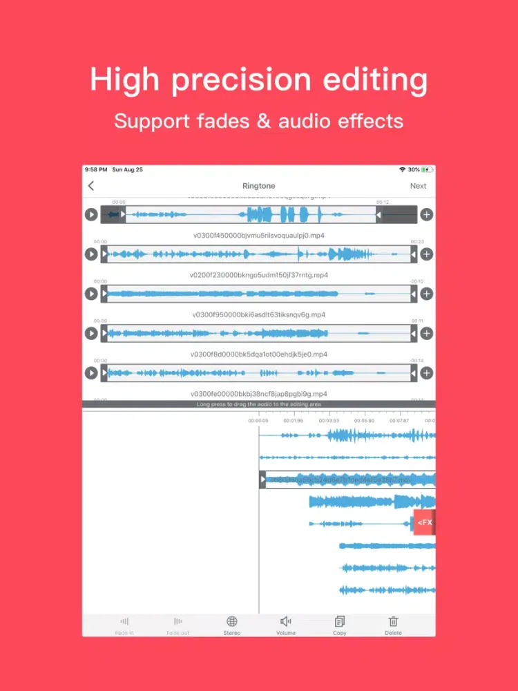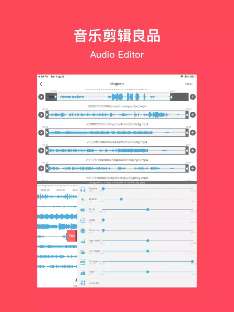Audio Editor is a professional audio processing tool that allows you to easily edit and record audio, cut and combine mixes and string music. You can also add a variety of audio effects such as pitch, reverb, delay, tone, etc., to easily create cool ringtones.