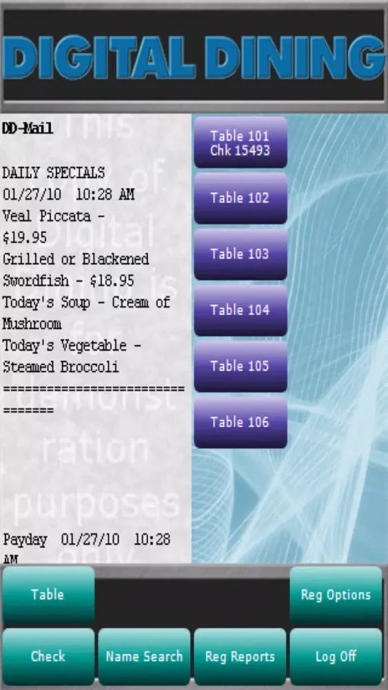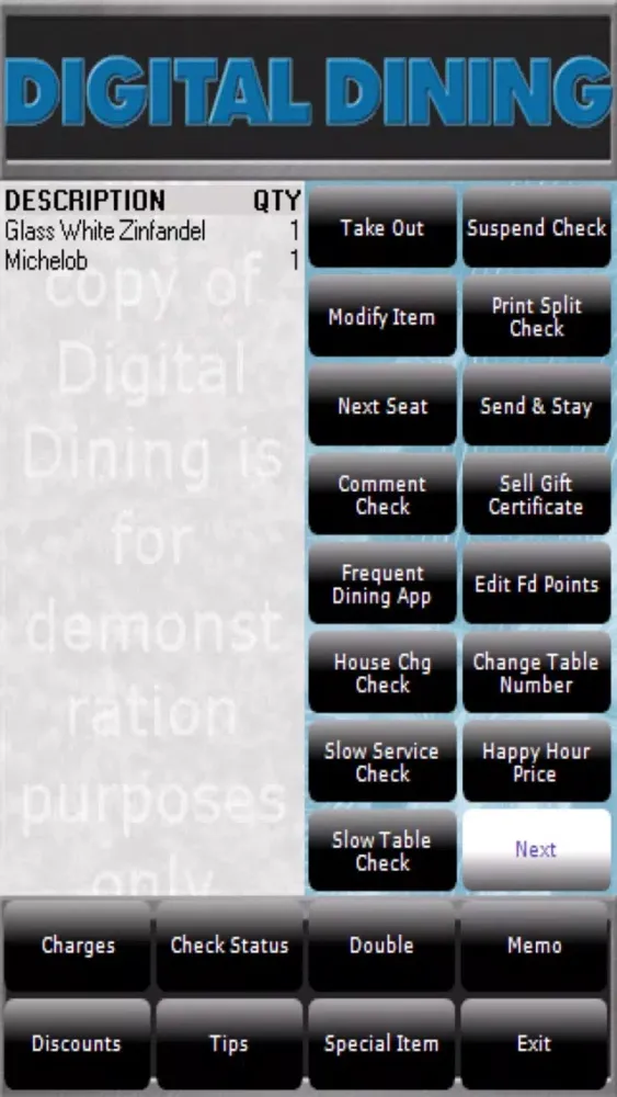 This App is for use exclusively with the Digital Dining POS System - This App requires PCI secure WIFI network and Digital Dining POS available license - This App requires activation from your local authorized Digital Dining Dealer.