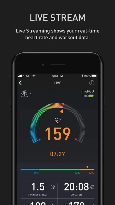 The Mio APP connects to the new mioPOD - the heart rate training tracker. Pair your mioPOD with the Mio APP, select your desired training Heart Rate zones, and the MIO Cardio Pilot™ will prompt you to stay within your personal training intensity targets via haptic feedback and glanceable color light alerts.