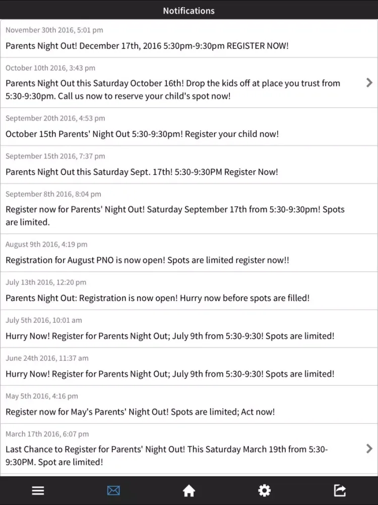 Receive push notifications for closings, upcoming events, registration openings, special announcements, and more.