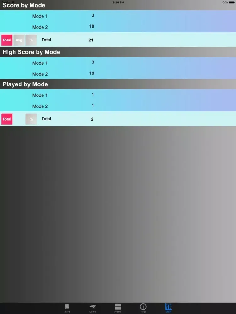 A Statistics screen will keep track of your score and High scores on a per mode basis.