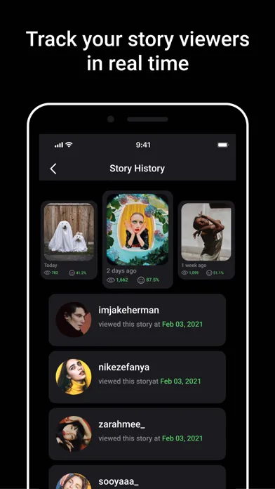 - Find out profile interactors, story viewers, potential users and seed followers.