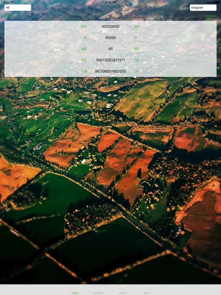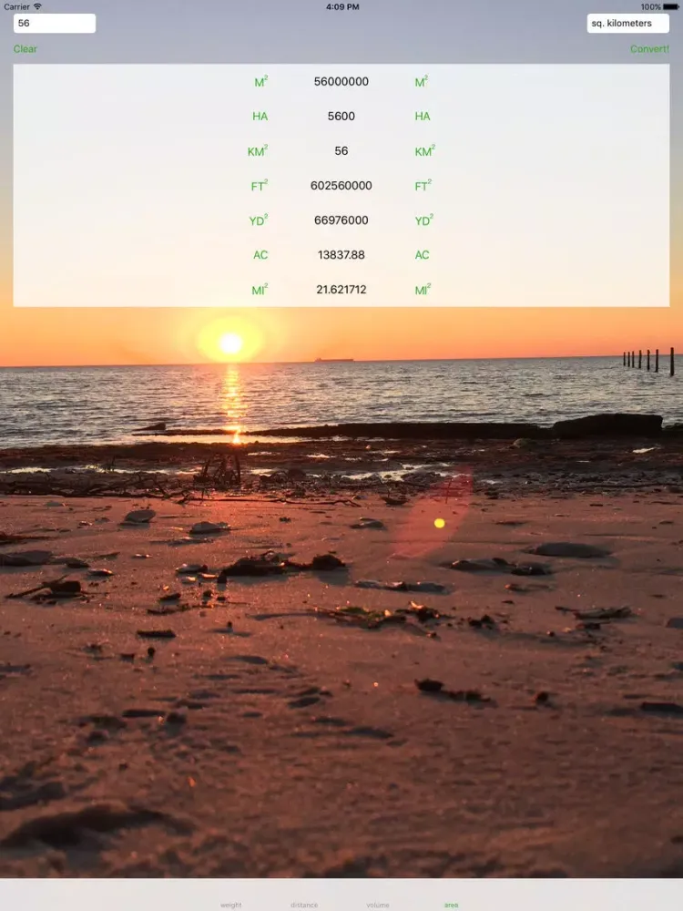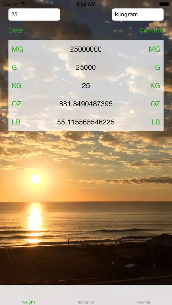 Conversions are a part of daily life, so why not make them an experience that is to be cherished? Every time you launch Converted by rollinsio, you will be treated to wonderful images as a backdrop for your conversions. As you switch between conversion types (weight, distance and volume) you will be treated with breathtaking and interesting images as backgrounds.