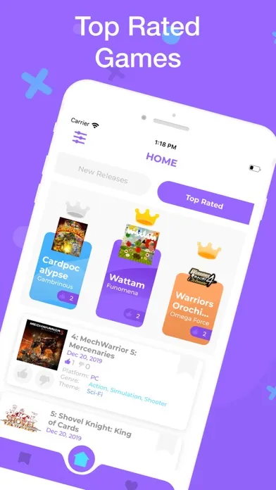 The latest games: discover new releases! It is an application designed to discover new games and keep up to date with the latest releases, from famous games to indi games that you will only find in our application. You can find games for all platforms including iOS, Play Station PS, Xbox, Nintendo, Wii. Save your favorite games, rate them, help more players play them. Discover which are the best rated games.