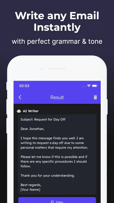 - Multilingual Support: Write emails in multiple languages with high accuracy. Perfect for international business and personal communication.