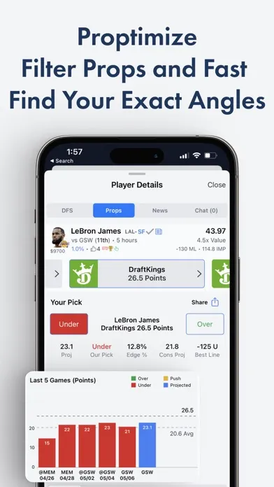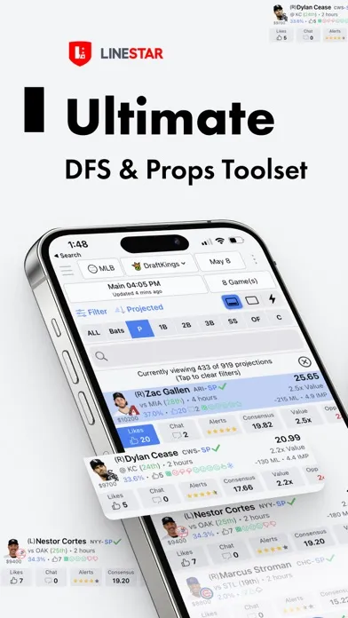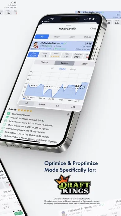 This app is not affiliated with, or endorsed by DraftKings Inc. All trademarks are the property of their respective owners. This app is for entertainment purposes only. Technology behind Technology behind LineStar is covered by US patents: 9,751,010, 9,744,450, 10,478,721, 11,660,533 additional patents pending. LineStar® is a registered trademark of BetFully Inc.