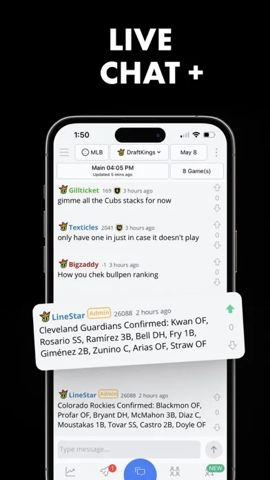 · Watch your lineups w/push notifications giving critical game/player information