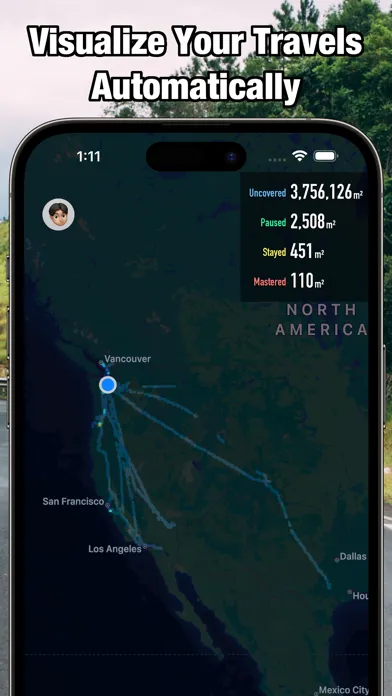 - Automatically see your travels in vivid colors on a personalized map