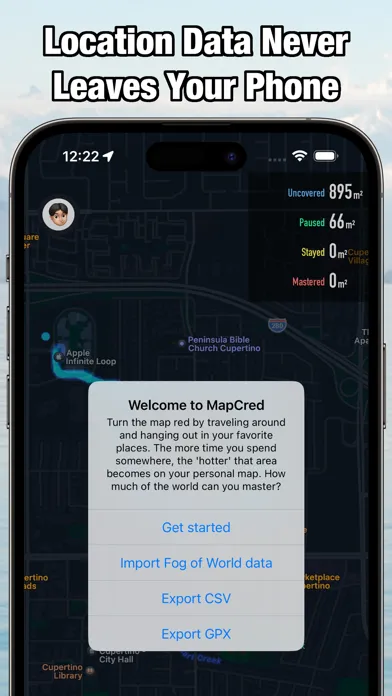 With MapCred, your personal map is kept private and secure. All location data is stored locally on your iPhone or iPad, and if you choose to use Game Center, only your scores are shared – never your location. MapCred uses location in the background to update your map, but your data is never shared with anyone else.