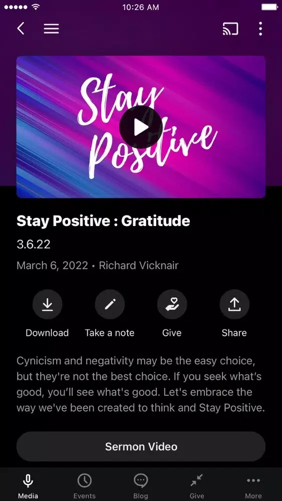 Listen to the latest sermon, catch up on latest news, or blog posting. After you've downloaded the app, share it with friends via twitter, Facebook, or email.