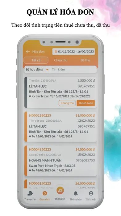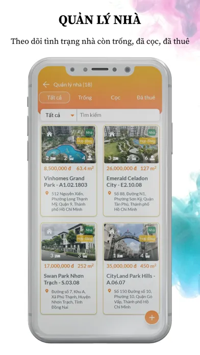 Ứng dụng sẽ giúp bạn theo dõi bất động sản cho thuê, hợp đồng, khách thuê, tiền thuê, tiền cọc, …