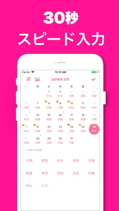 シフトをワンタップで入力でき、自動で次の日に移動するので、ポンポンと30秒間くらい入力することができます