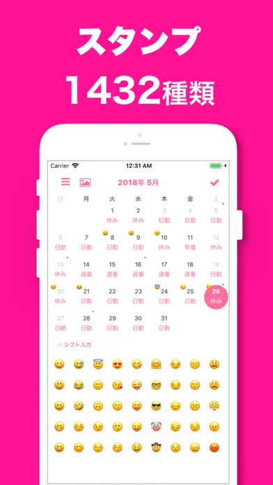 1432種類のスタンプの中から、その日にあったスタンプを入力し、記録しておくことができます
