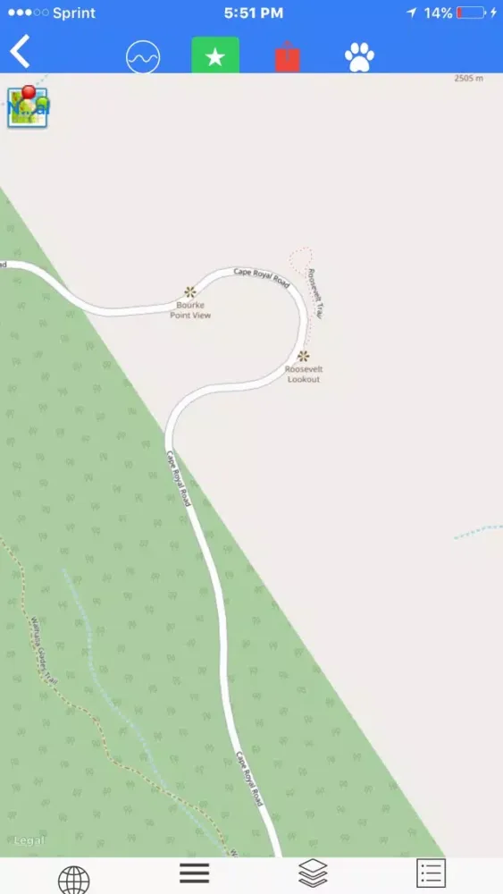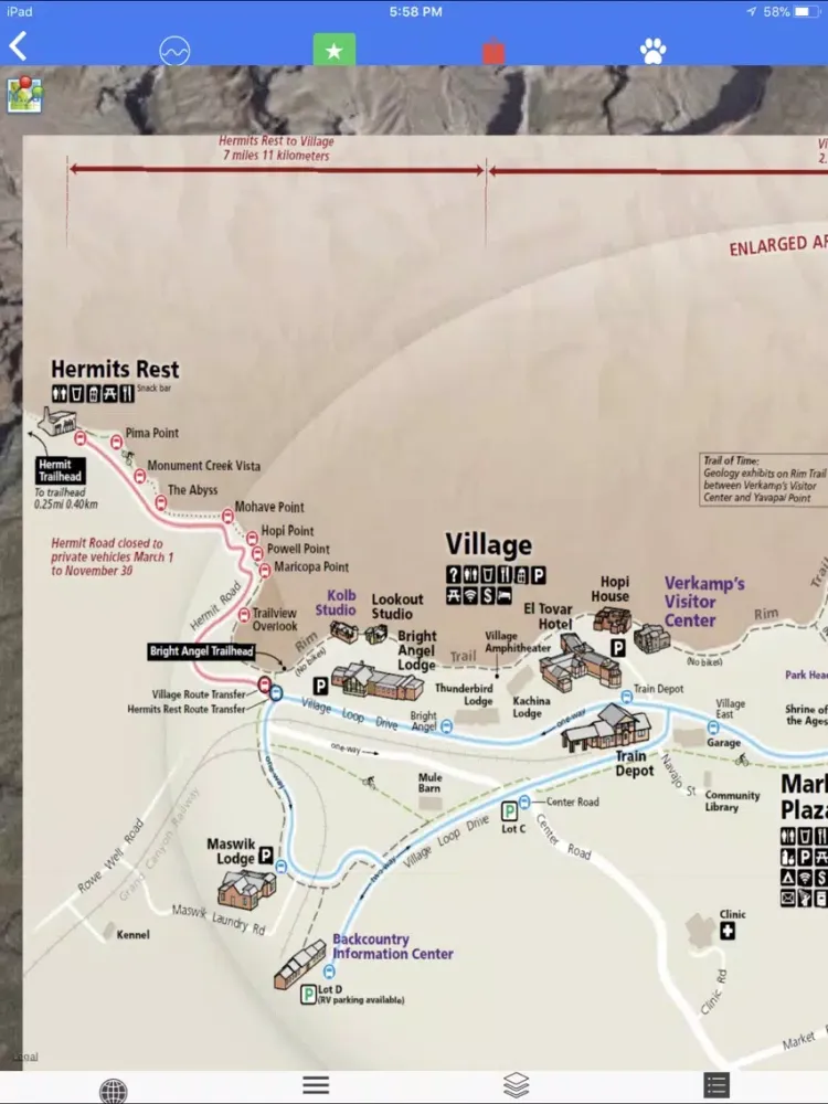 The offline map is scaled to online maps, brings you a peace of mind when you know where you are when internet is not available and you are in/outside the Grand Canyon National Park