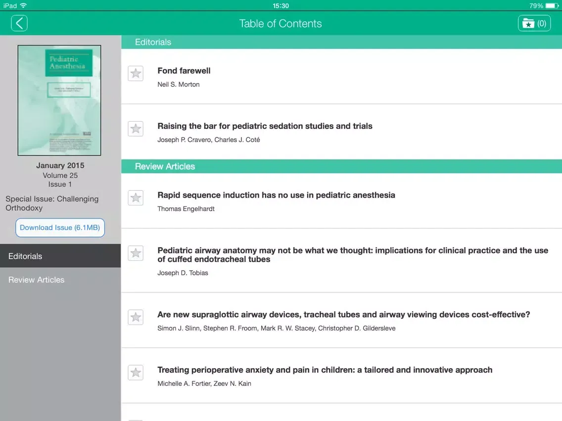 CURRENT SUBSCRIBERS to Pediatric Anesthesia can “pair” their device with their personal or institutional subscription to enjoy full access in this iPad edition.