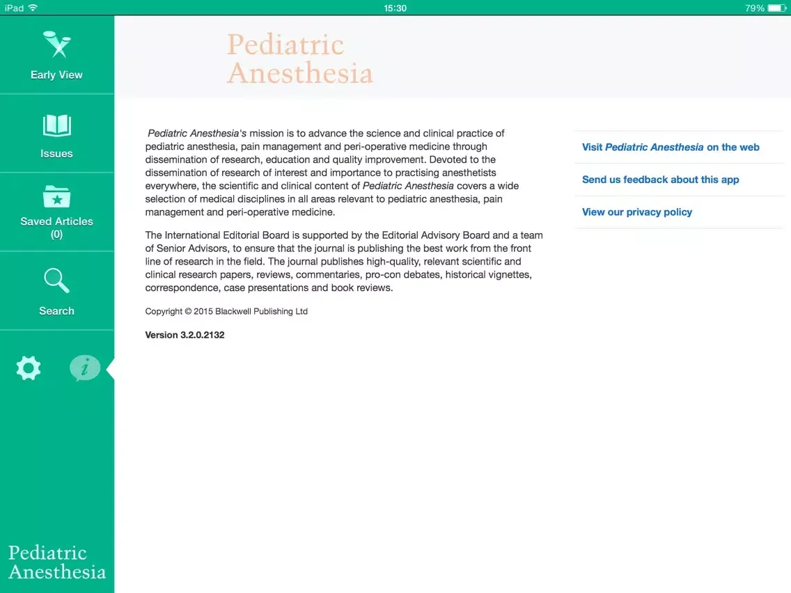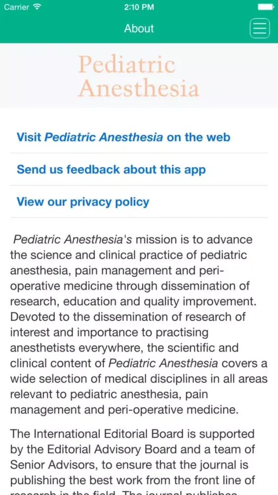 SUBSCRIBE IN THE APP: Annual Subscriptions (12 issues) for the iPad-only edition are available for $349.99 (US) per year. Payment is charged to your iTunes account after confirmation of purchase. Pediatric Anesthesia subscriptions automatically renew within 24 hours of the end of your subscription period for $349.99 (US) unless auto-renew is turned off at least 24 hours before the end of the subscription period. To turn off auto-renew, go to your iTunes account settings after purchase. Note that subscriptions cannot be cancelled during the term of the subscription, but you can still turn off auto-renew to prevent automatic renewal of your subscription. Note that any unused portion of a free trial period, if offered, will be forfeited when you purchases a subscription.