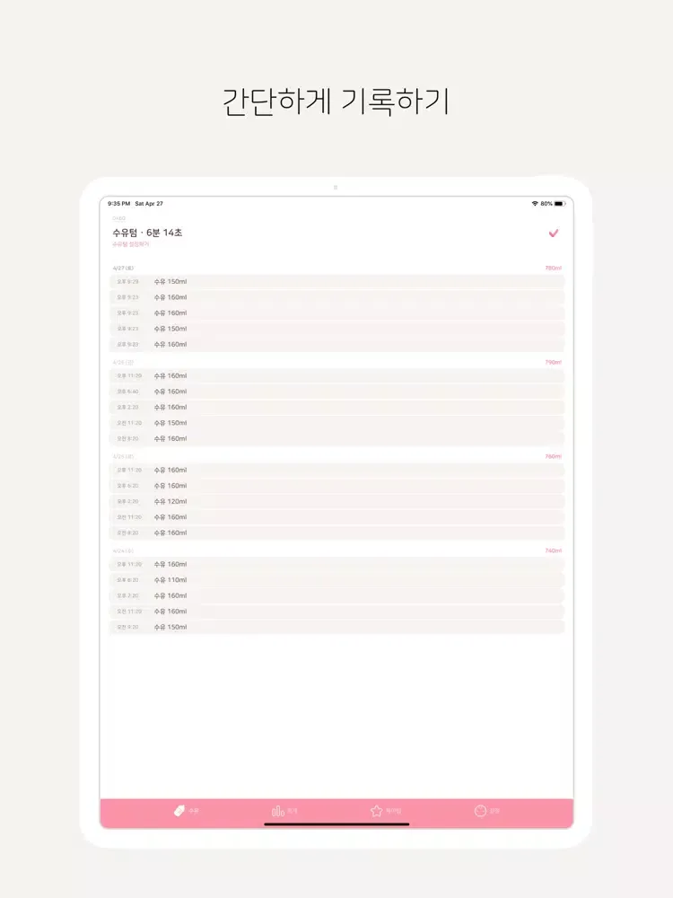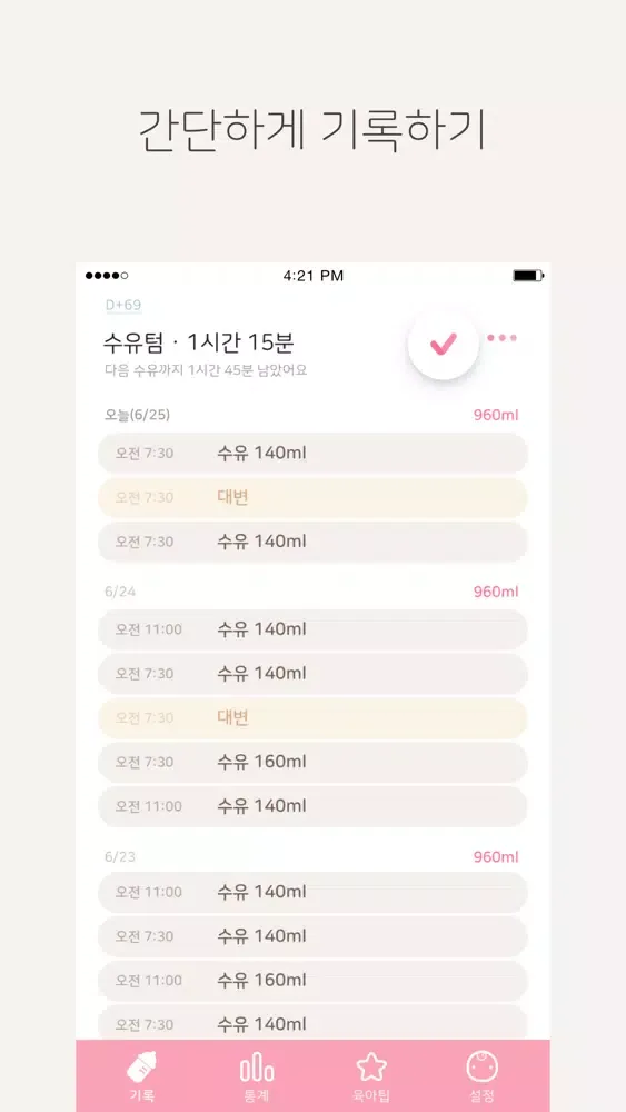 수유하고 체크만 누르면 간단하게 기록되요