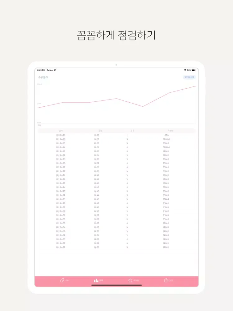 수유 변화량을 한눈에 체크하세요