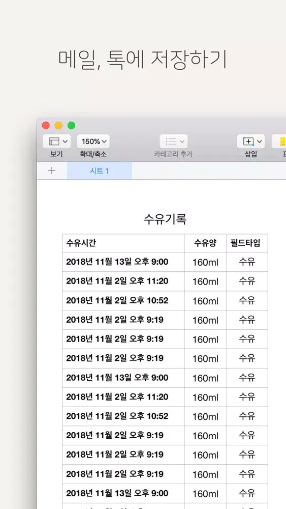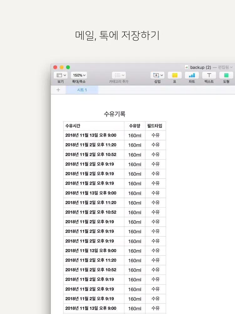 모든 수유 기록을 톡으로, 메일로 다운로드할 수 있어요