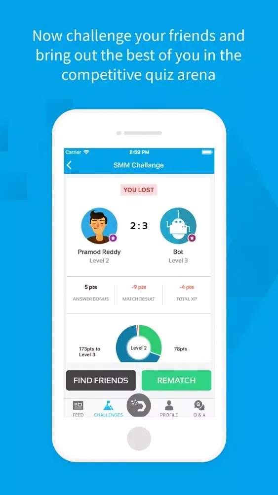 -Quiz questions to track the learning status. The result can be shared and mailed too